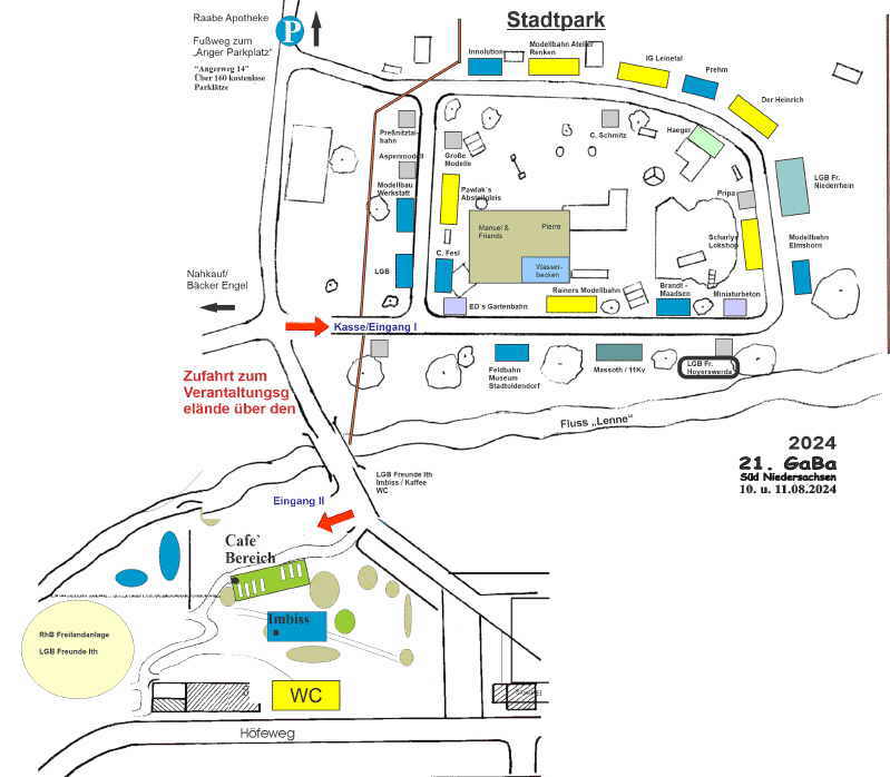 Da das Ausstellungsgelände geteilt ist (Stadtpark und Privat Gelände) gibt es zwei Einlass Bereiche: Eingang 2 (Privat Gelände) und Eingang 1 (Stadtpark). Die Kasse befindet sich 2024 am Eingang I. Eintritt muss natürlich nur 1 mal bezahlt werden!